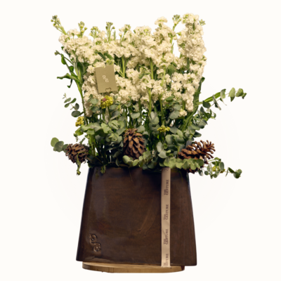 An elegant arrangement of fresh white flowers presented in a handcrafted ceramic vase, exclusively designed for The Gesture. Timeless and sculptural, this piece is made to be kept — a quiet statement of care, and lasting beauty.